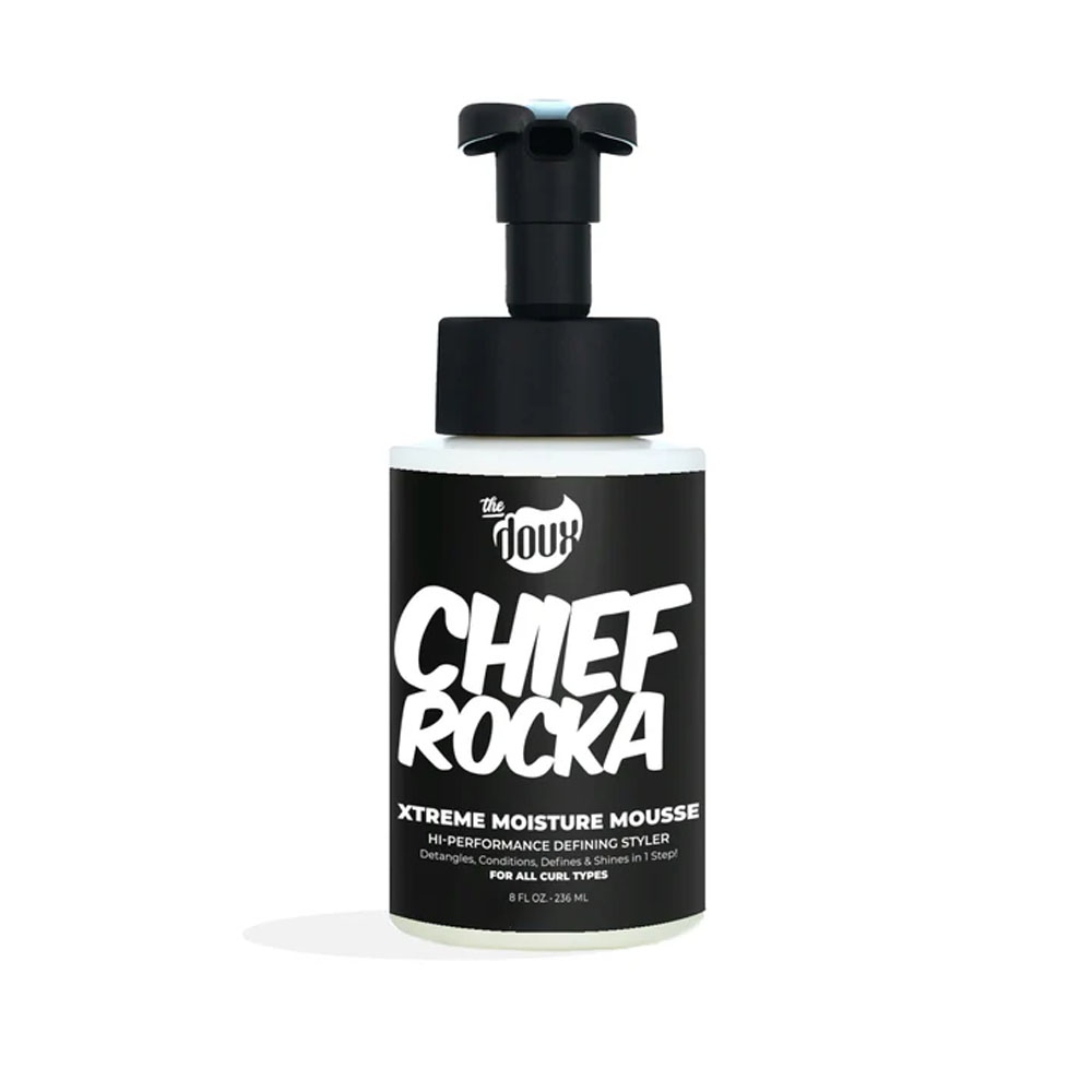 Return of the boom bap – for your curls. The Chief Rocka Xtreme Moisture Mousse gel-to-foam transformer brings xtreme moisture with lasting hold. Chief’s in the building.